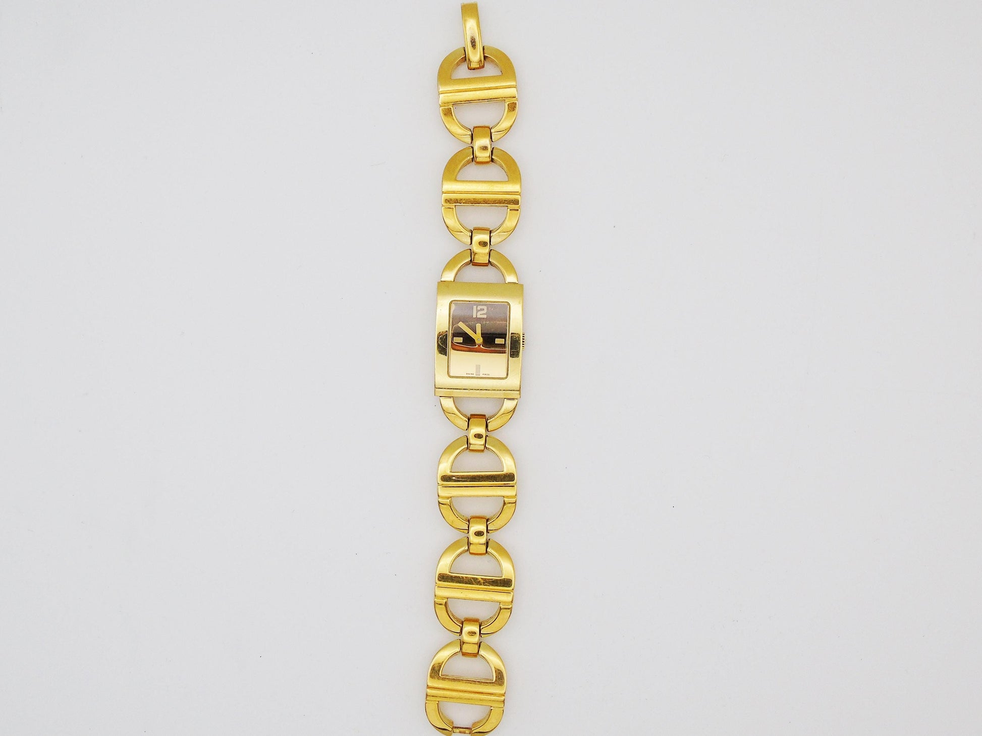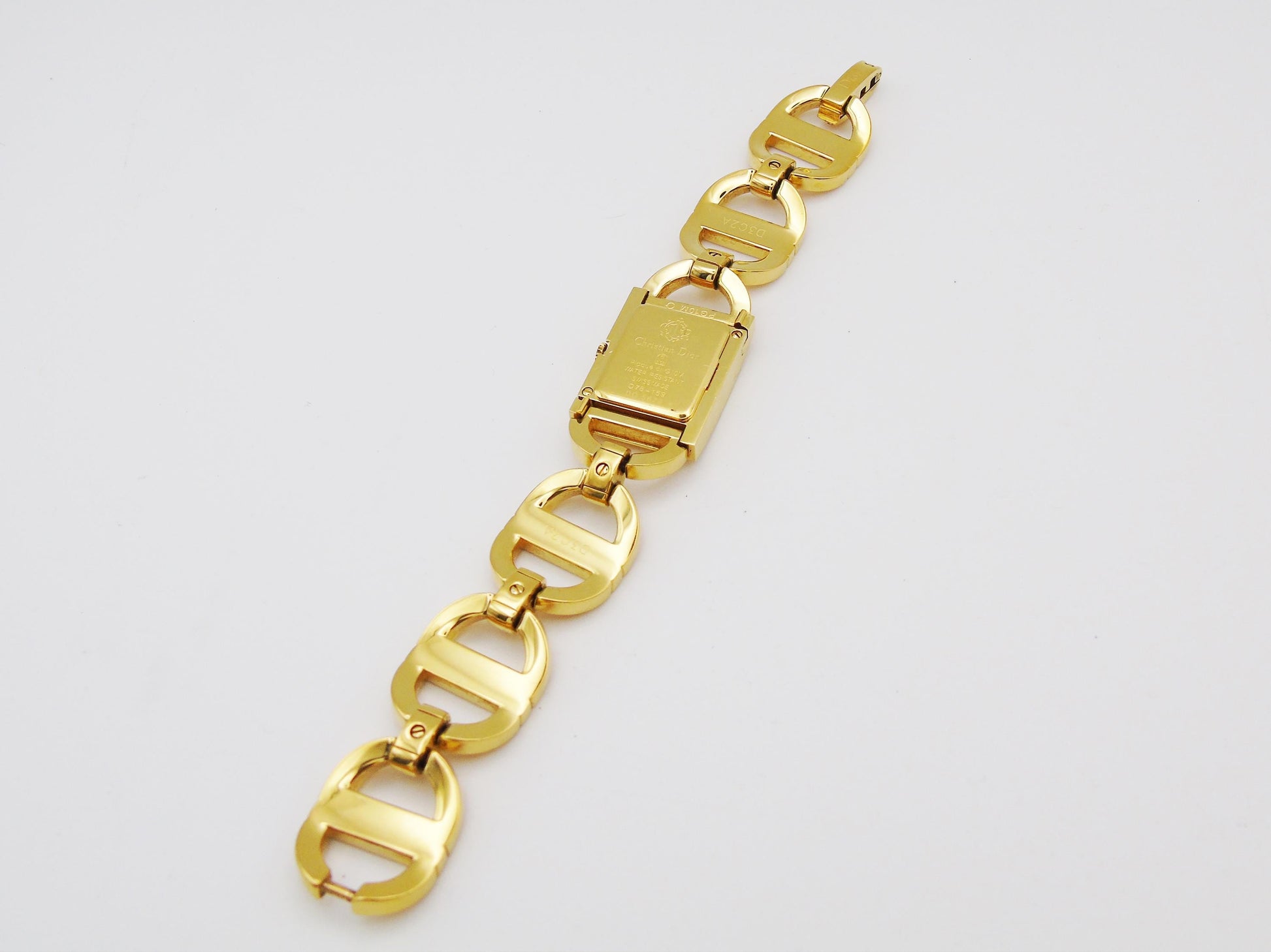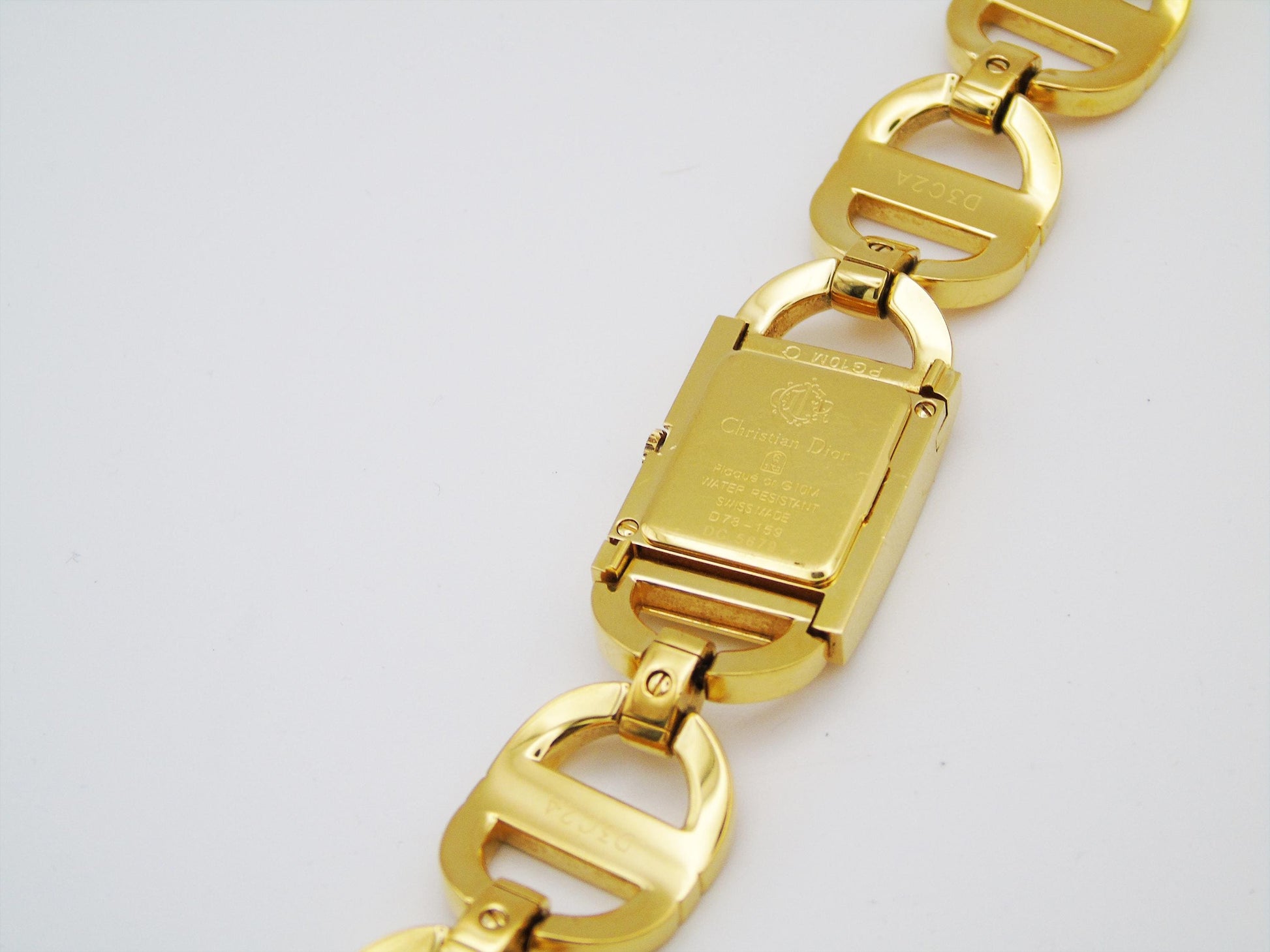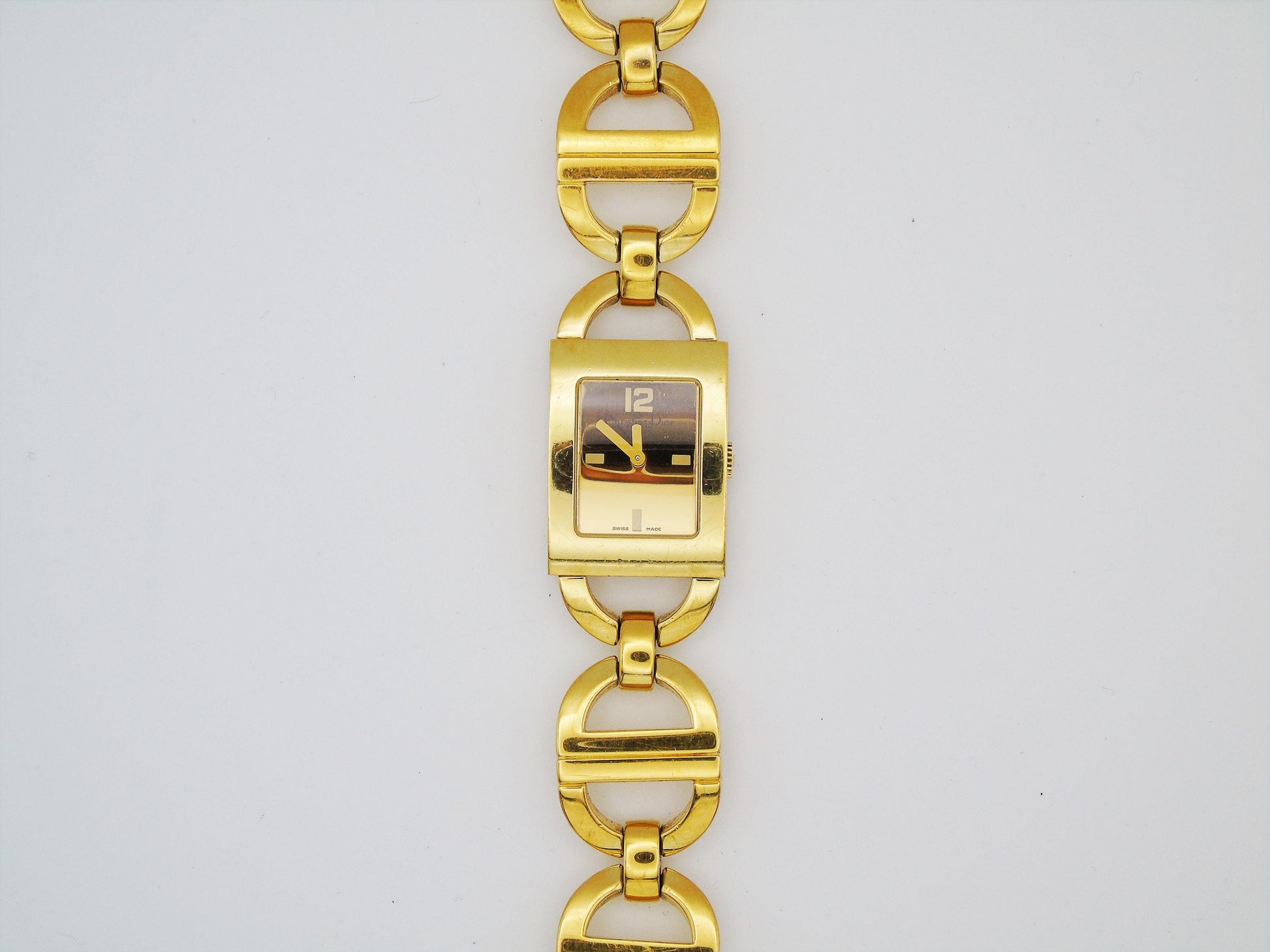 This is a beautiful Christian Dior ladies watch. It looks very luxurious with its gold-plated case and gold dial. The watch comes in its original box and has all the paperwork, even the original receipt, to show it is real.