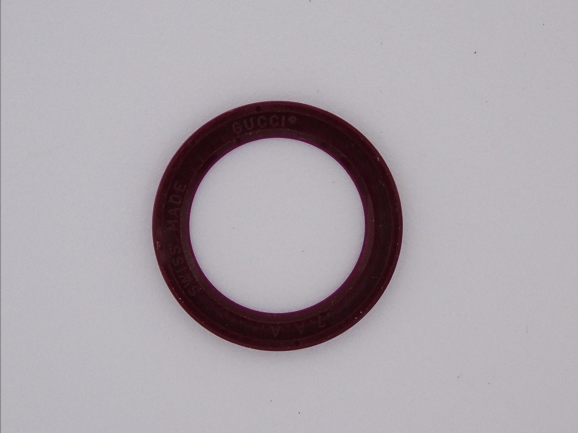 This is a real Gucci bezel made for the Gucci Change Bezel watches. It fits the Gucci 1100L models and the 11/12 models too. This is the Maroon red Gucci bezel and is very special and hard to find.