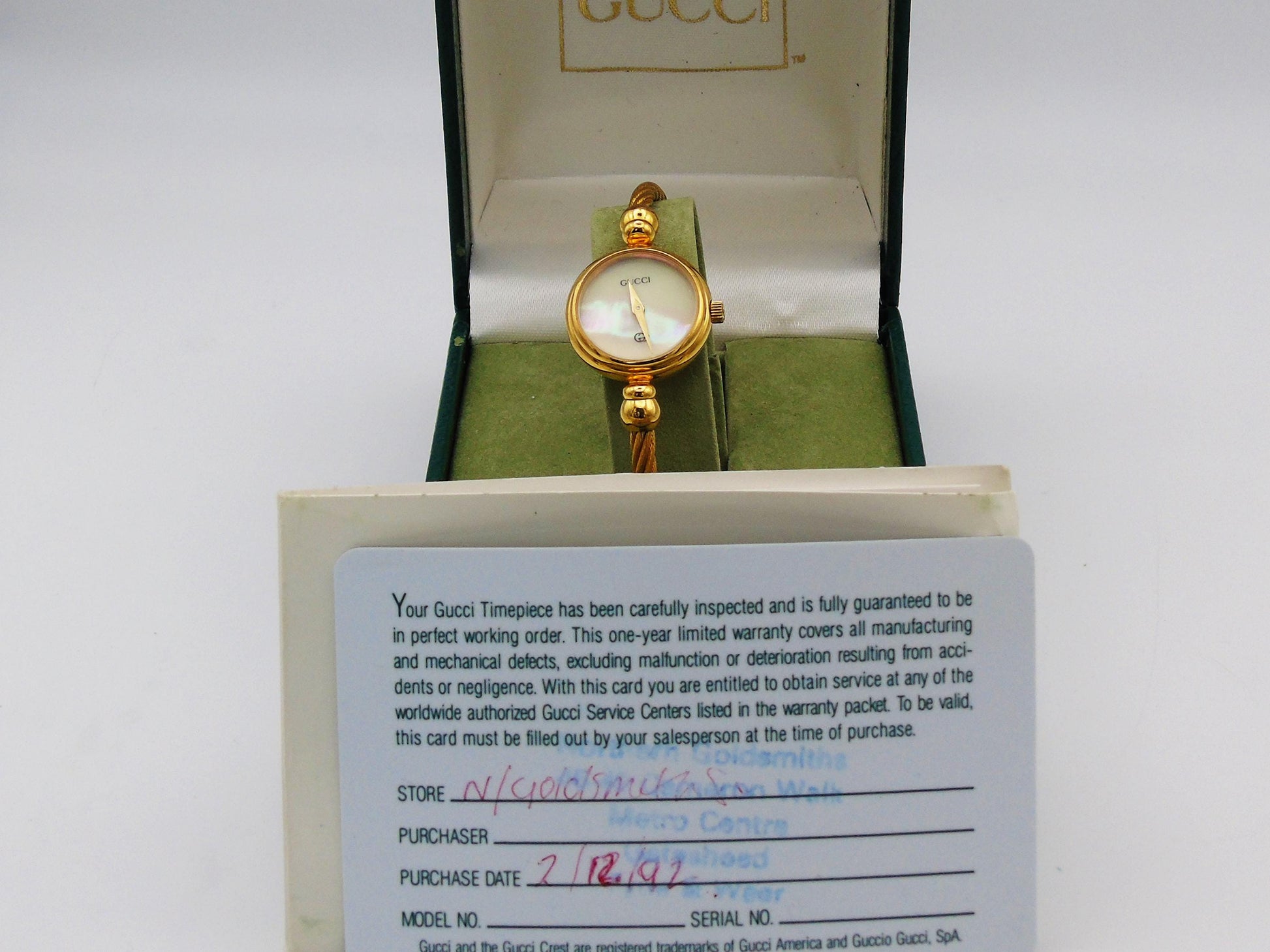 Gucci 2700 Rope Bangle Watch – Swiss Quartz, MOP Dial, Rope-Style Flexible Bangle, Box & Papers, Unique Design
