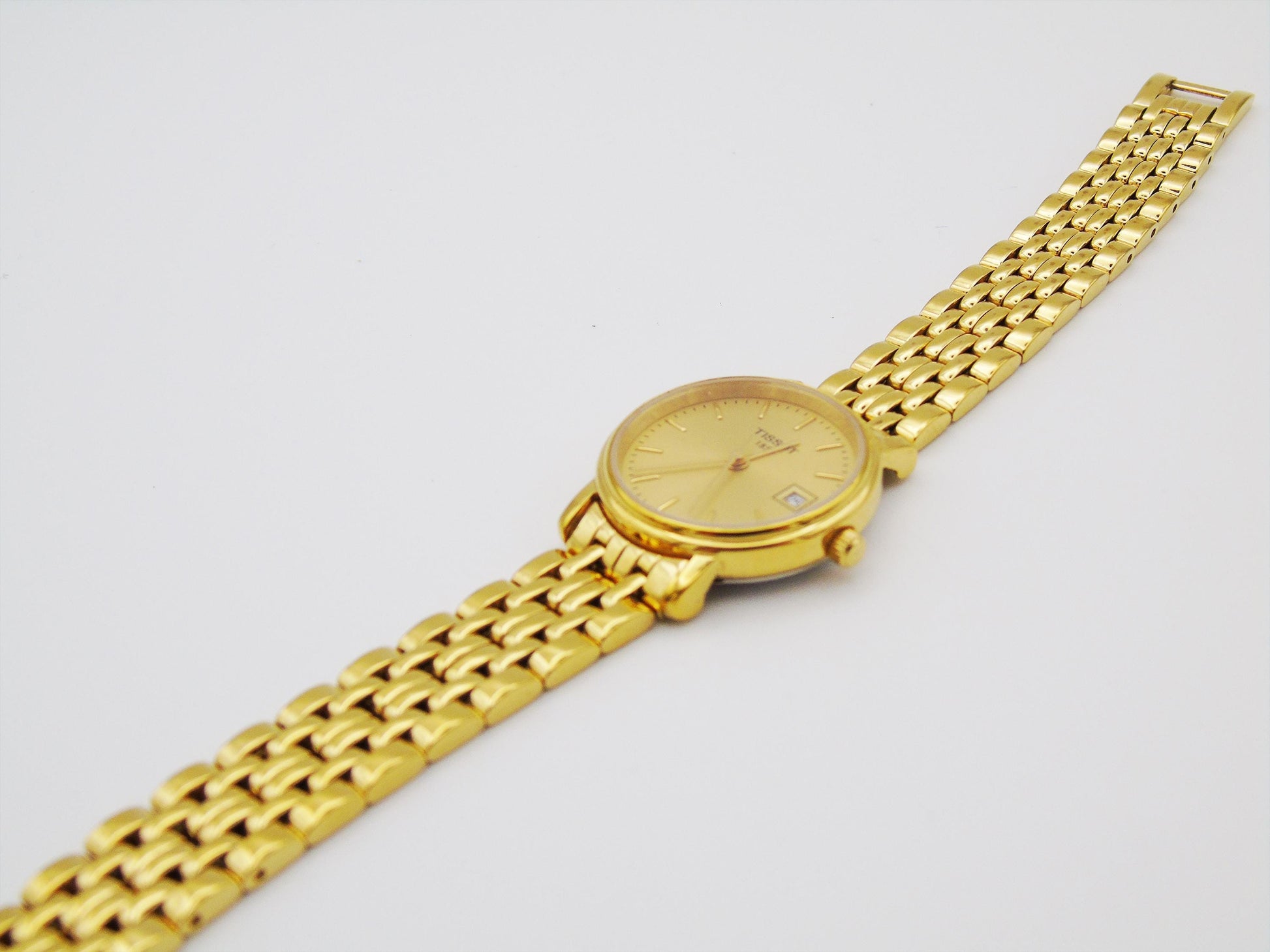 Tissot Ladies Gold Watch Date function Swiss Quartz Watch Small Wrist Elegant gold Plated