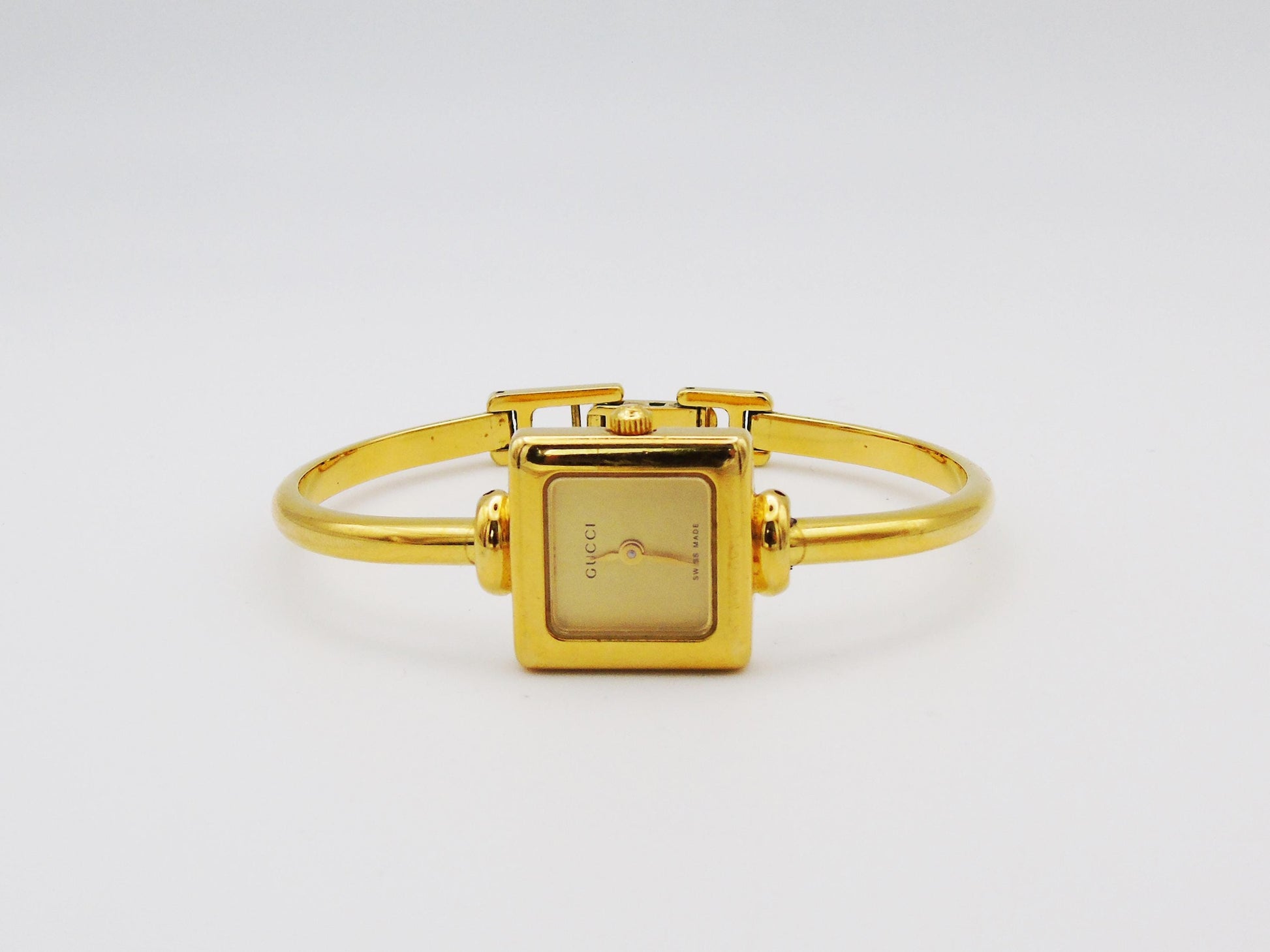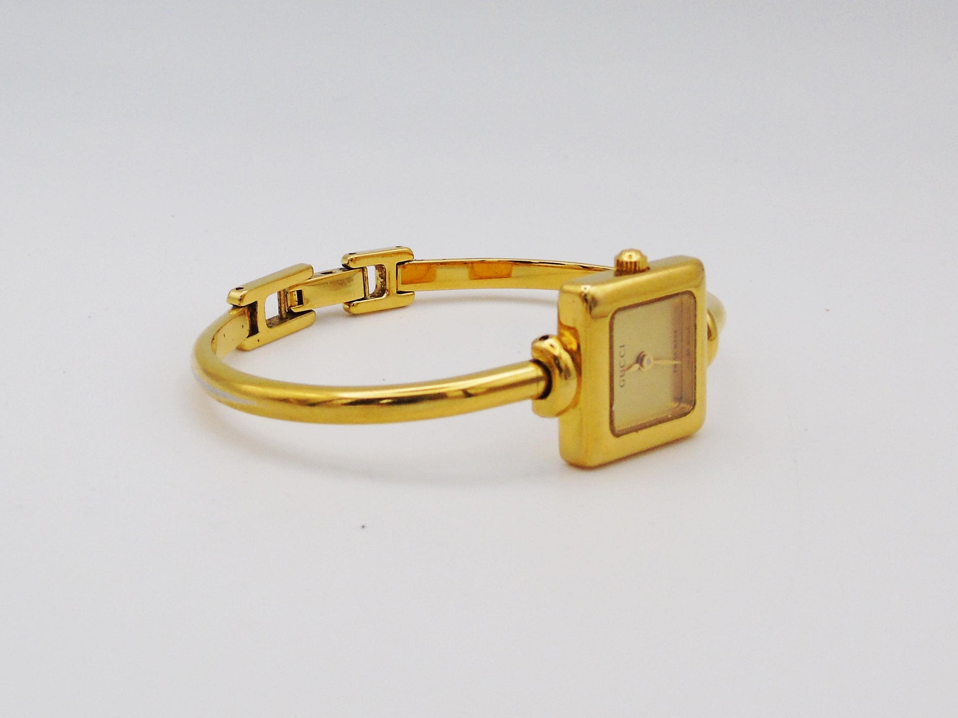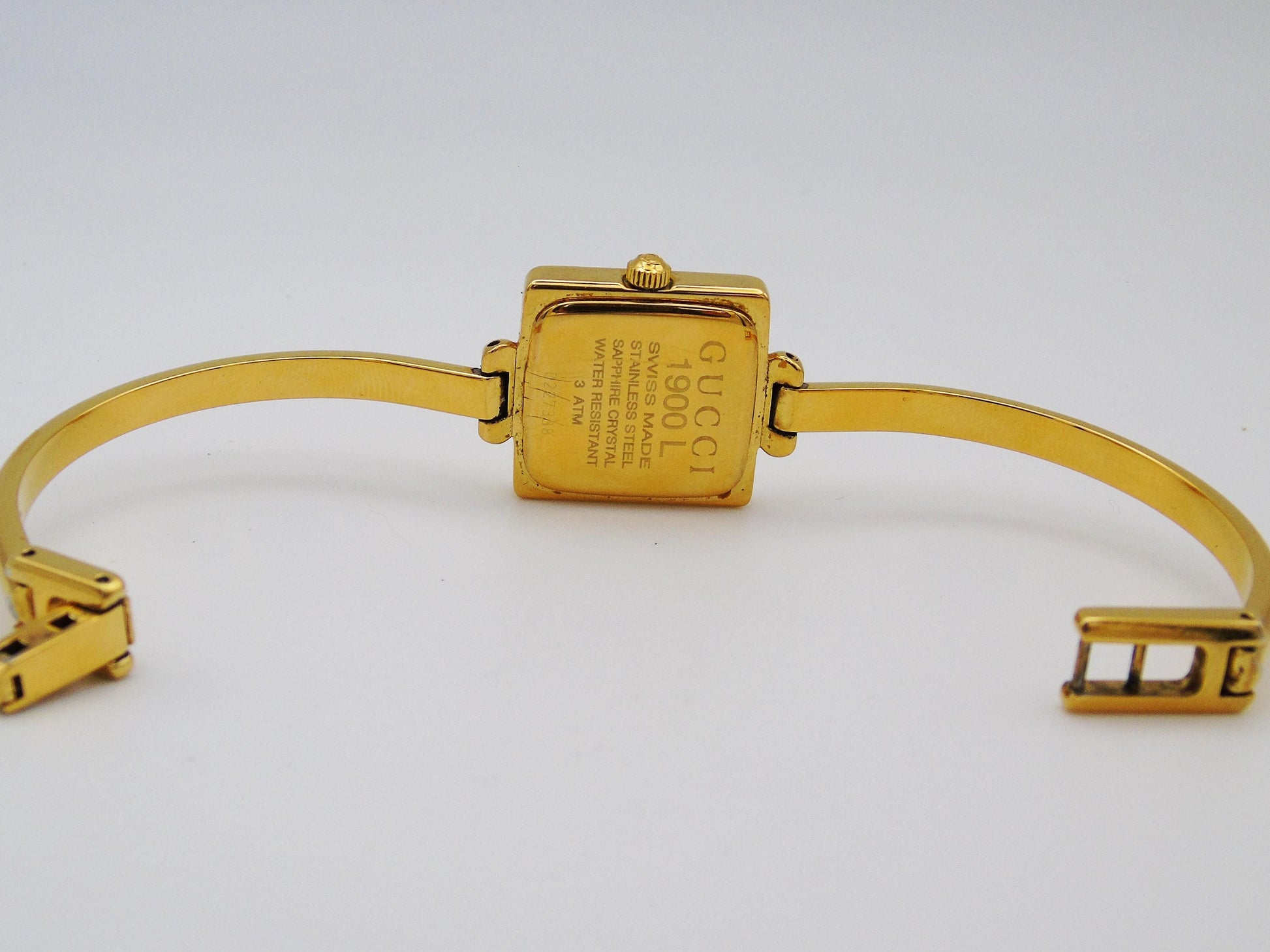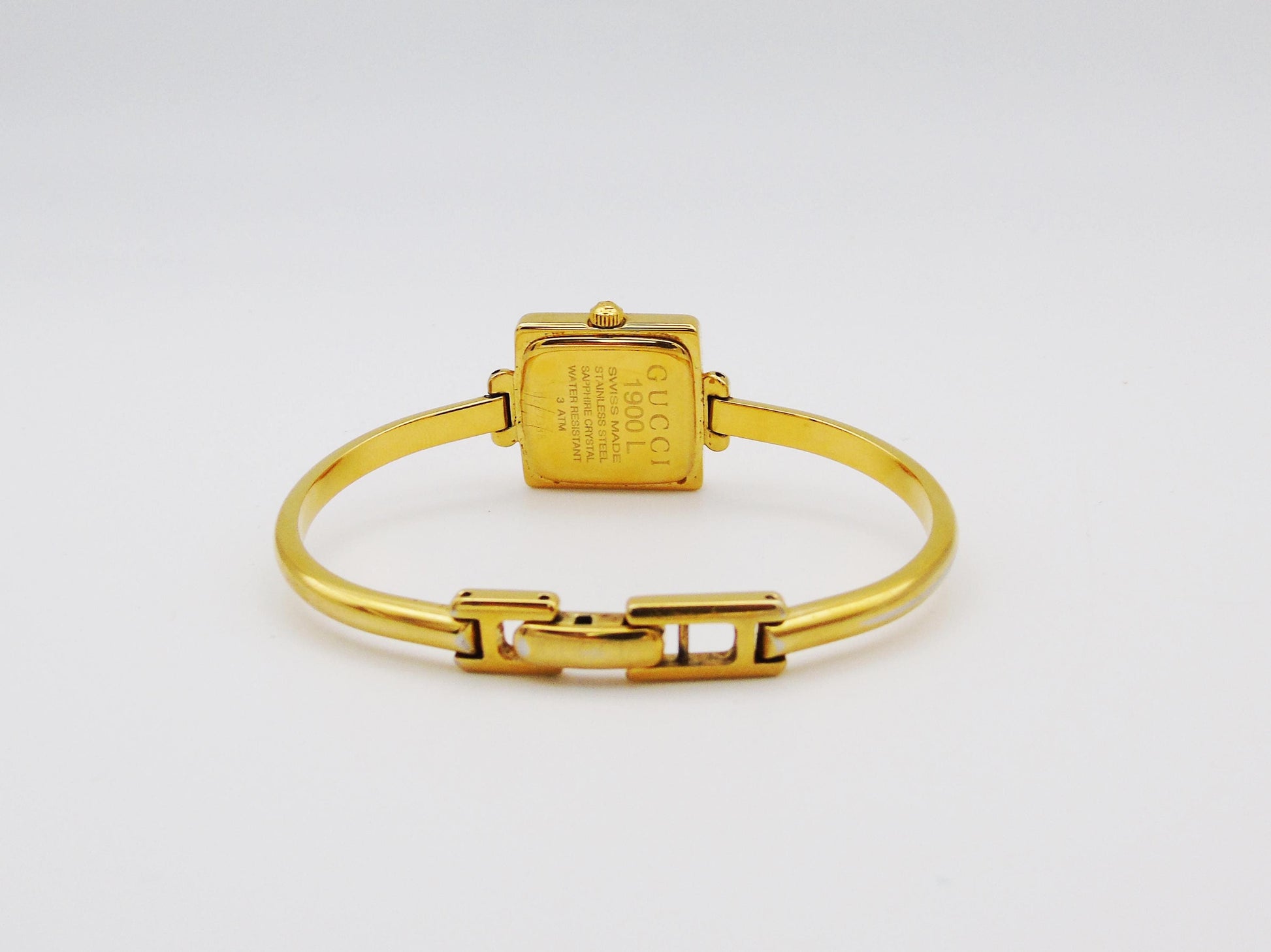 Vintage Gucci Watch with Box and Papers Square 1900L Gold Dial Elegant Gucci Wristwatch Cheap Gucci Jewellery Bracelet Bangle G57