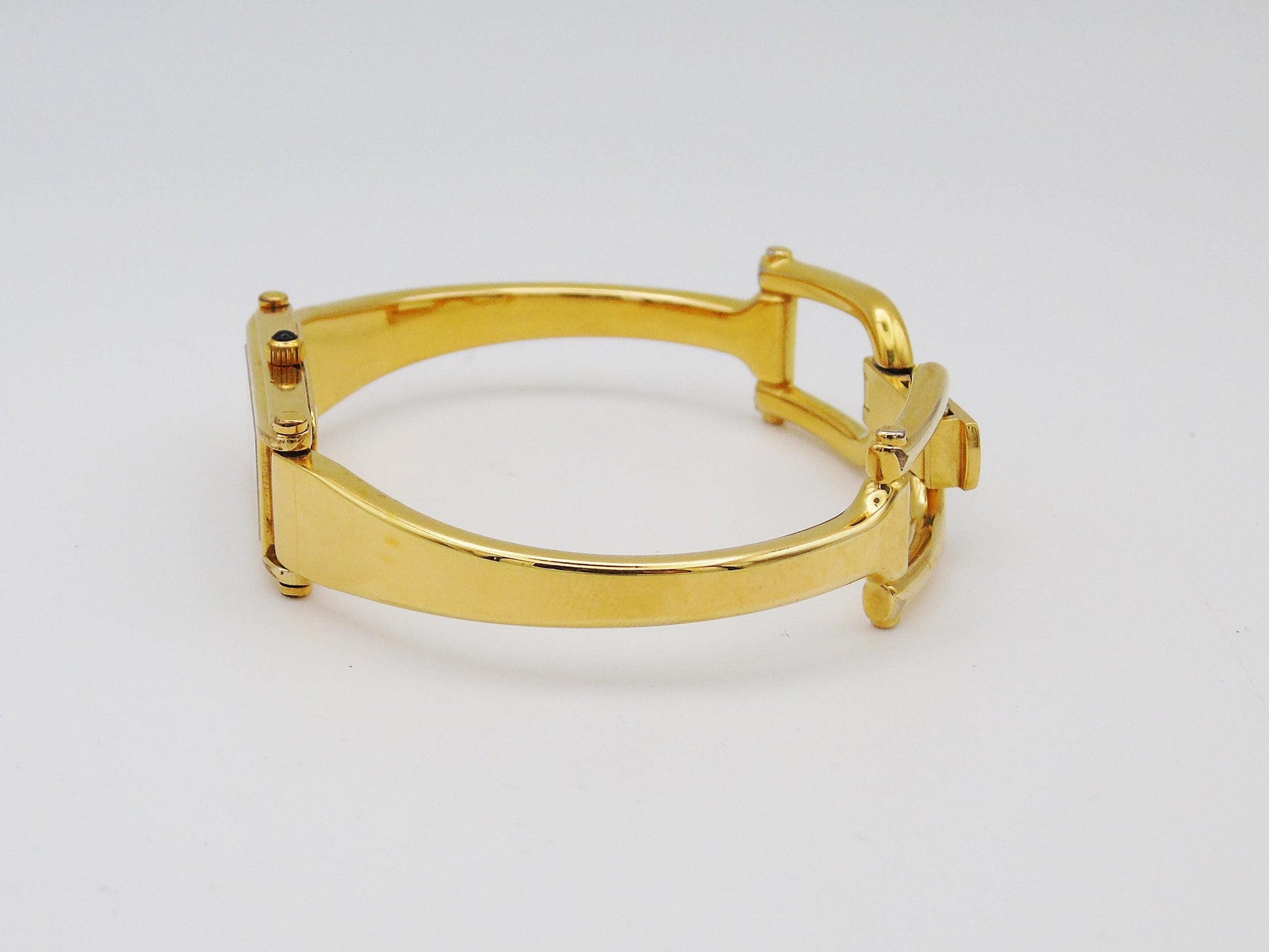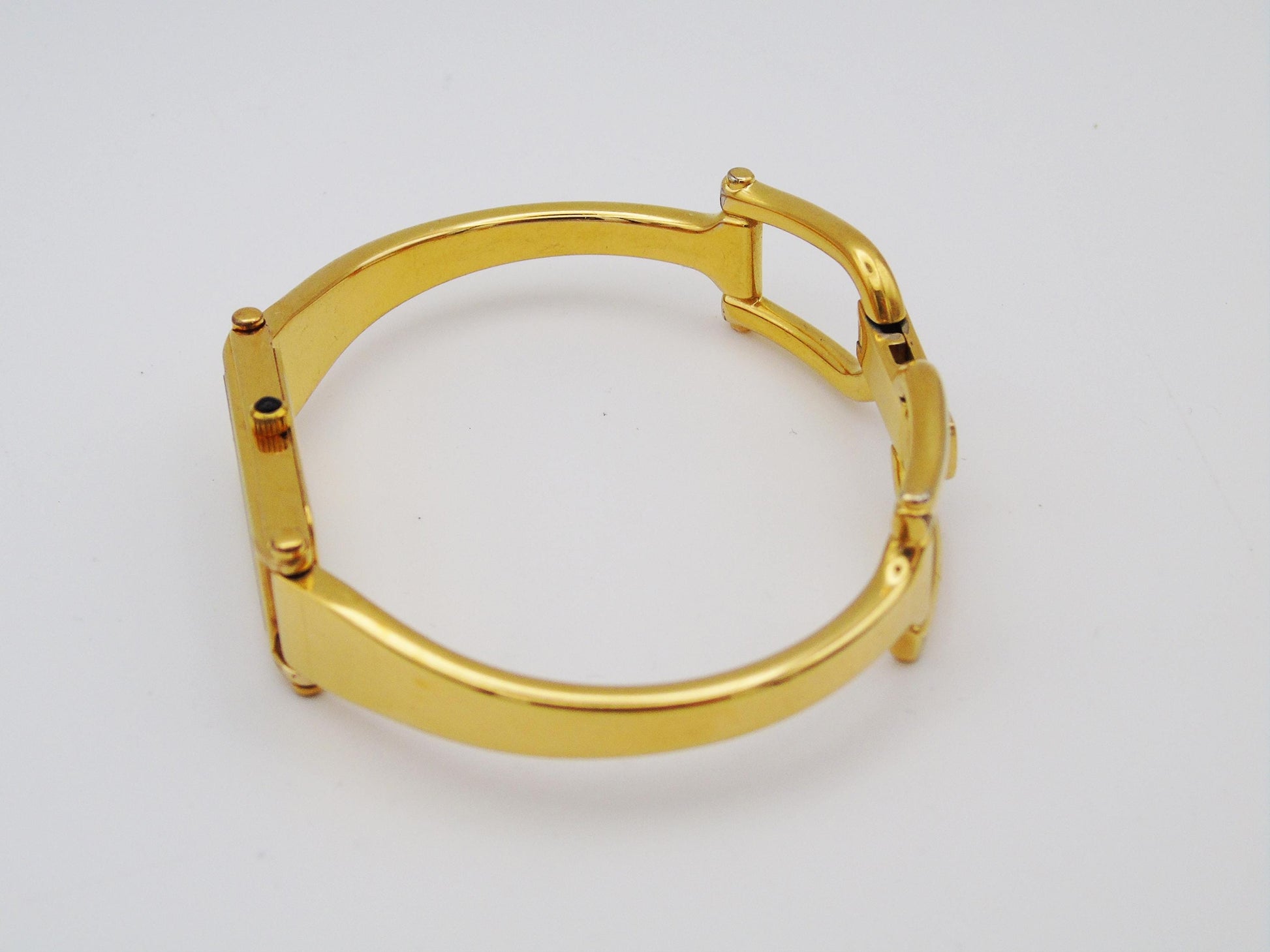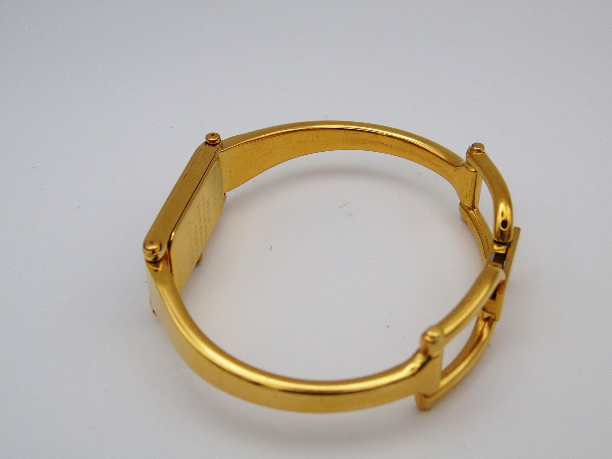 This is a genuine Gucci Ladies Gold Watch is a timeless piece that adds elegance to any collection. The Gucci 1500L model is part of the horsebit collection and it features a stunning mother of pearl dial and a sleek tank watch face, offering a classic and refined look.